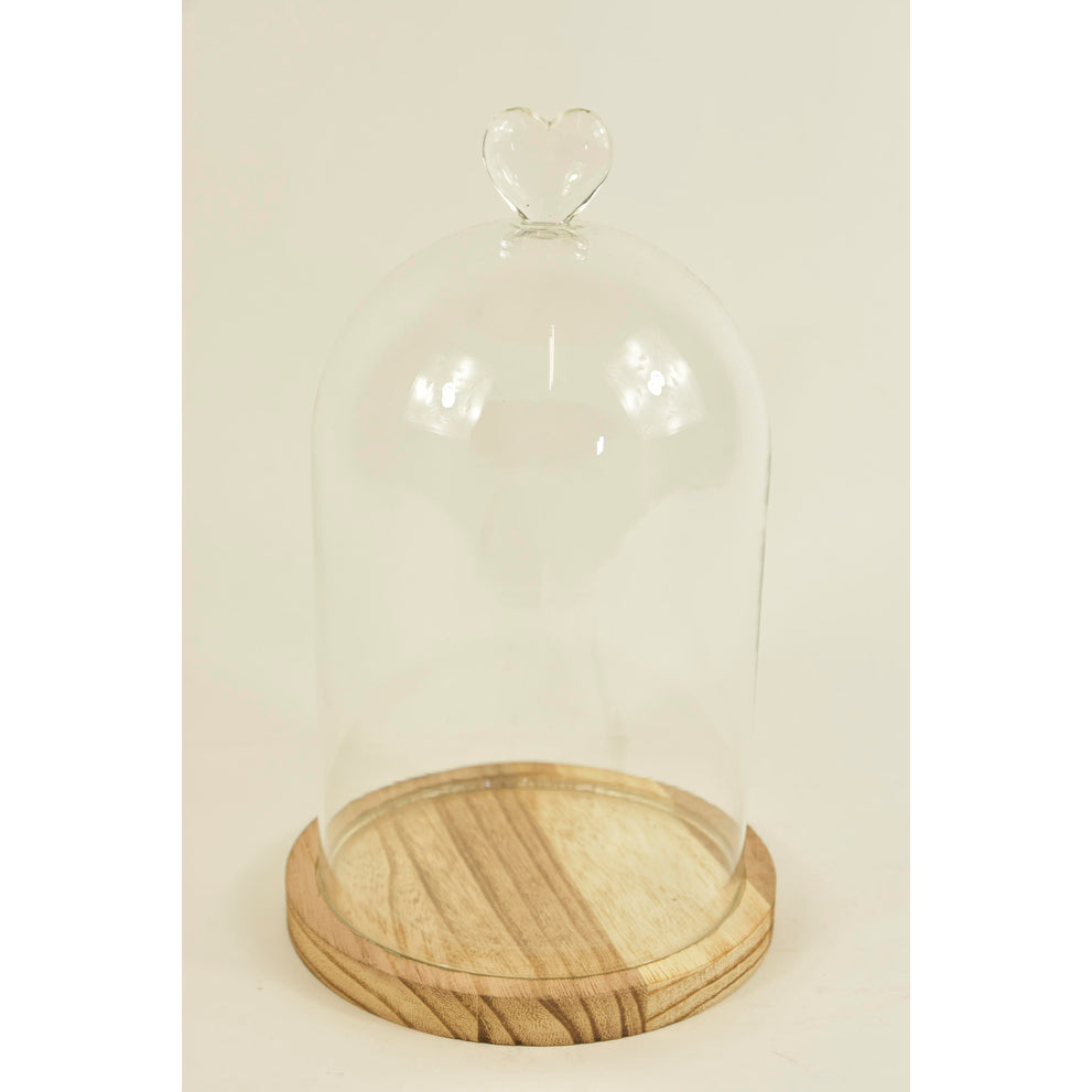 BELL GLASS HEART D14X22H ON WOODEN BASE NATURAL