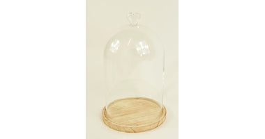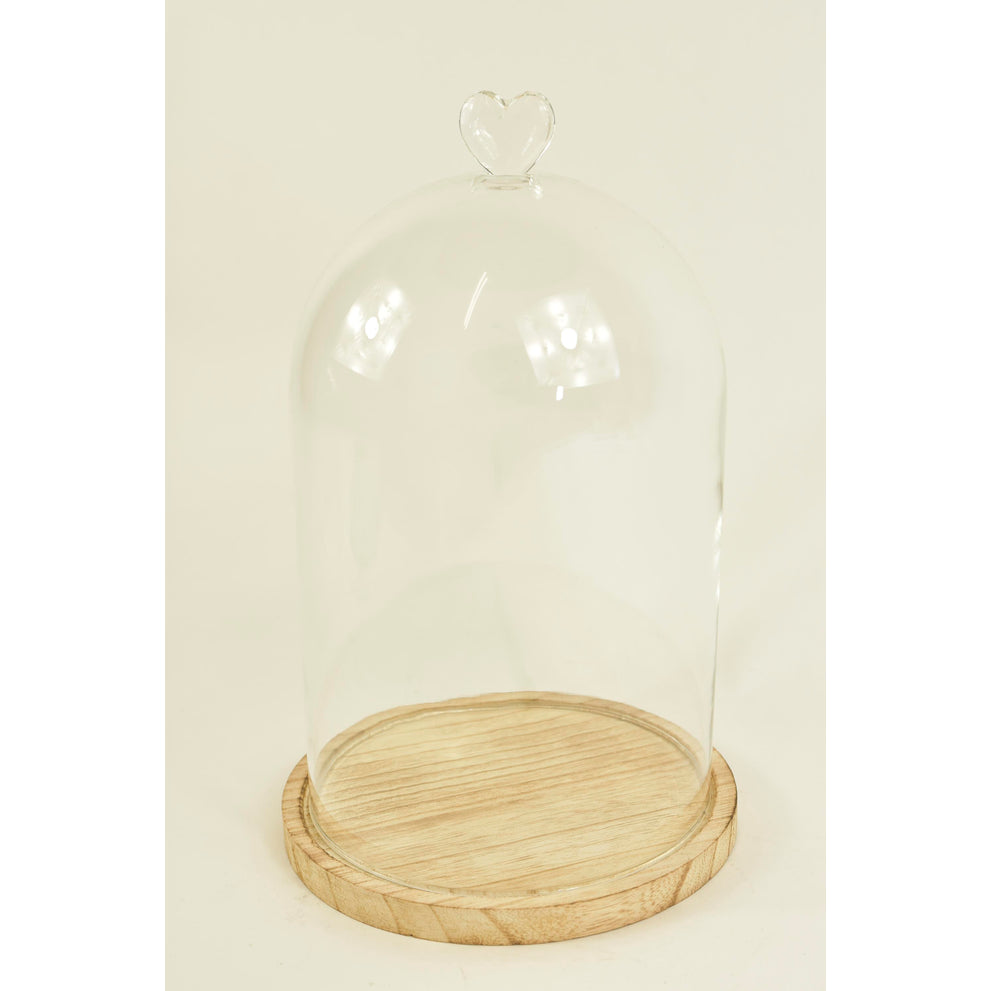 BELL GLASS HEART D17X27H ON WOODEN BASE NATURAL
