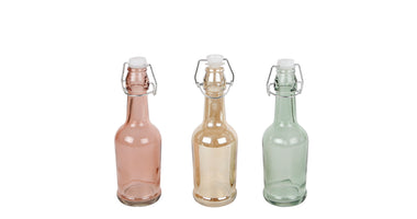 "Cobana" swing-top bottle S green/pink/blue 3 assorted glass 7x7x21cm