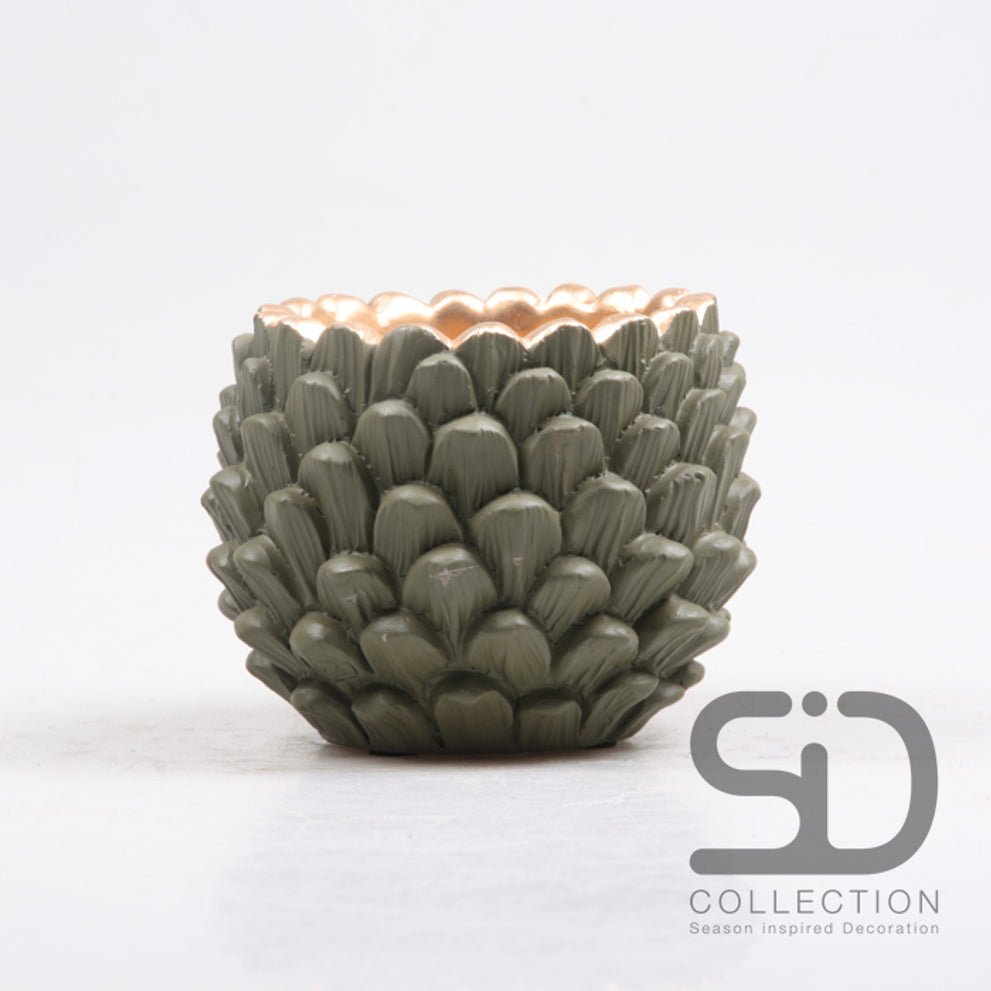 PINE CONE SHAPED CEMENT PLANT POT 14X14X11 CM OLIVE GREEN