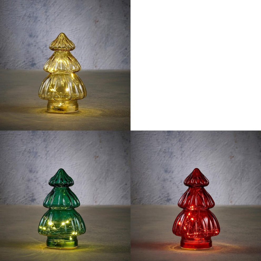 Tree green gold red 3 ass 10 LED - h19.5xd12cm - excl. battery with timer