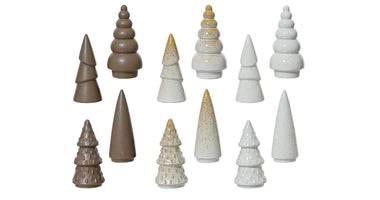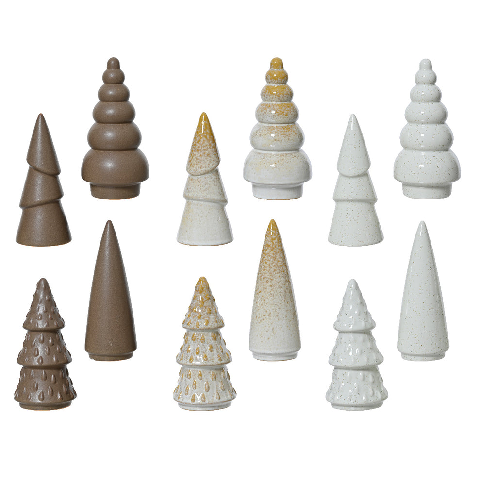 Tree porcelain 12 assorted white/cream/brown D8 H16cm