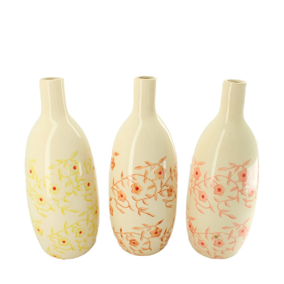 Bottle ceramic 14x14x35cm 3 assorted Orange mix