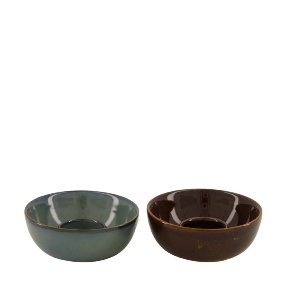 Candle holder ceramic Ø11.6x4.5cm Mixed Blue/Brown