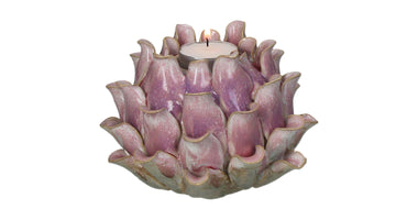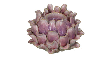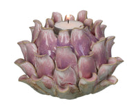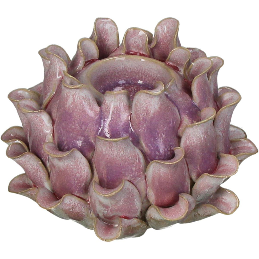 Candle Holder Flower Stoneware Pink 14.5x14.5x10.5cm