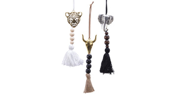 Card a 1 alloy animal head w tassel 3 assorted 17cm