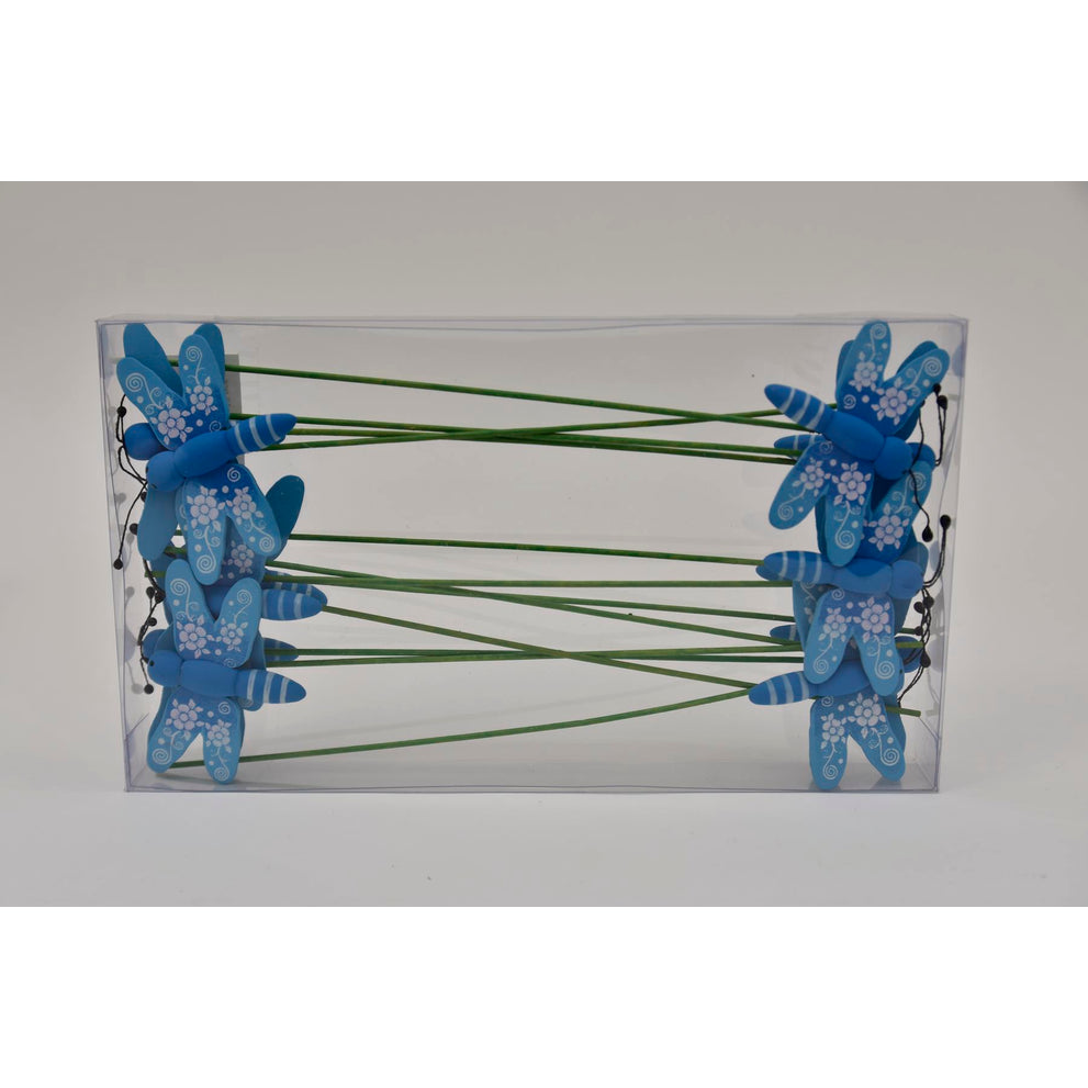 cb. 12 dragonflies/stick 7cm blue