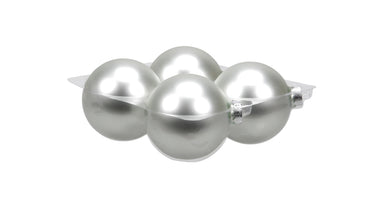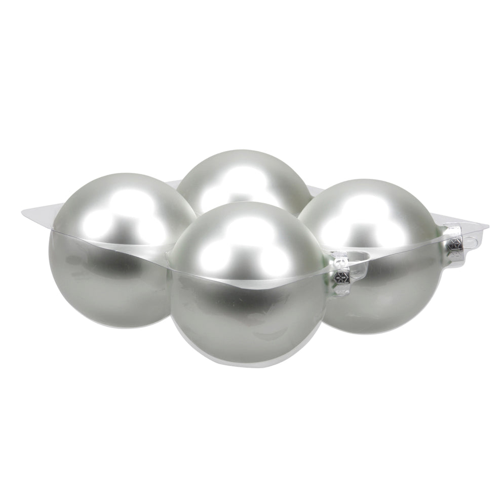 cb. 4 glassballs/cap silver matt 100 mm