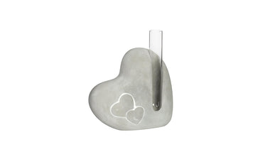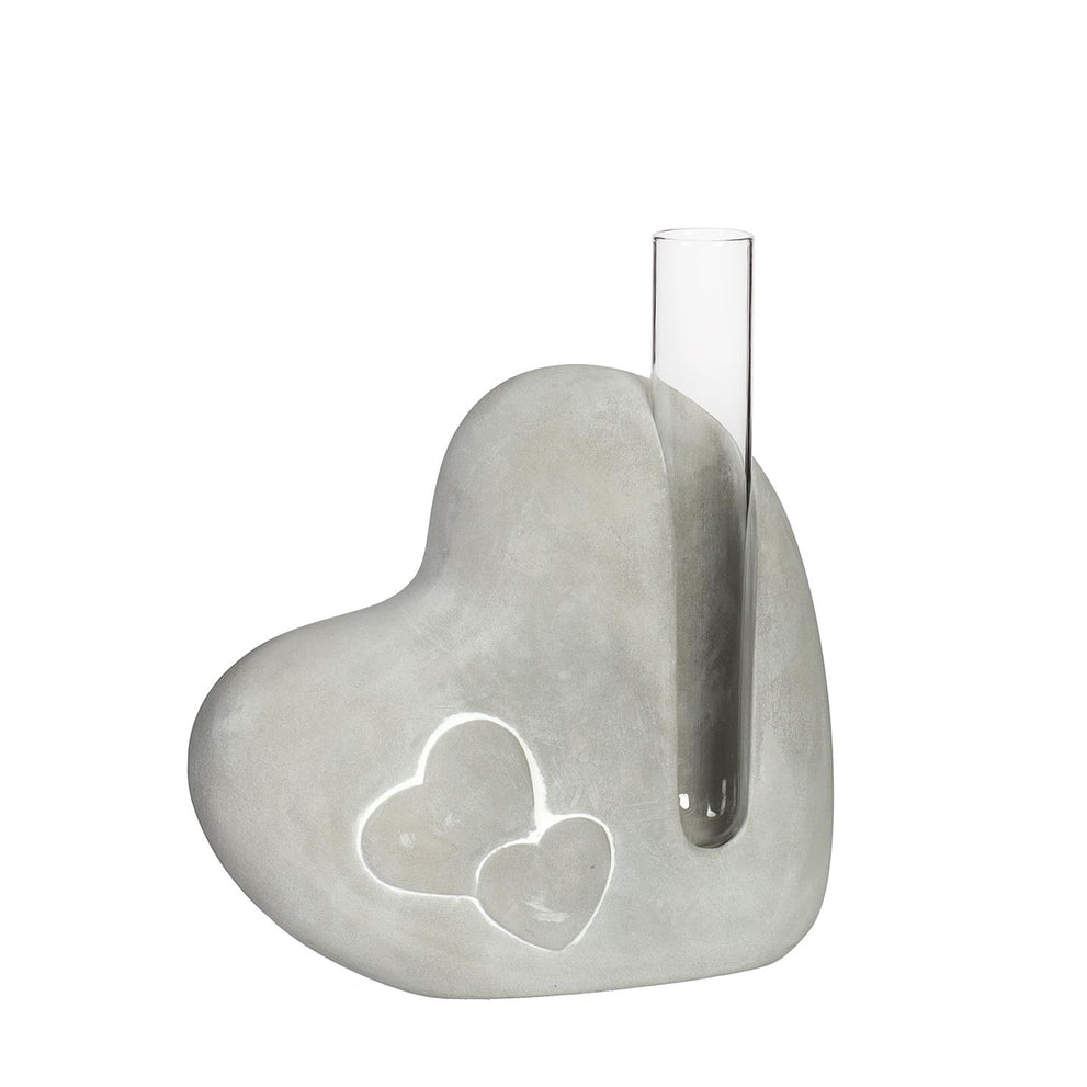 Cement heart with glass tube L4.5 x W13 x H14.6cm