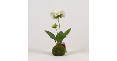 Dahlia x2 on Moss Ball H27cm White