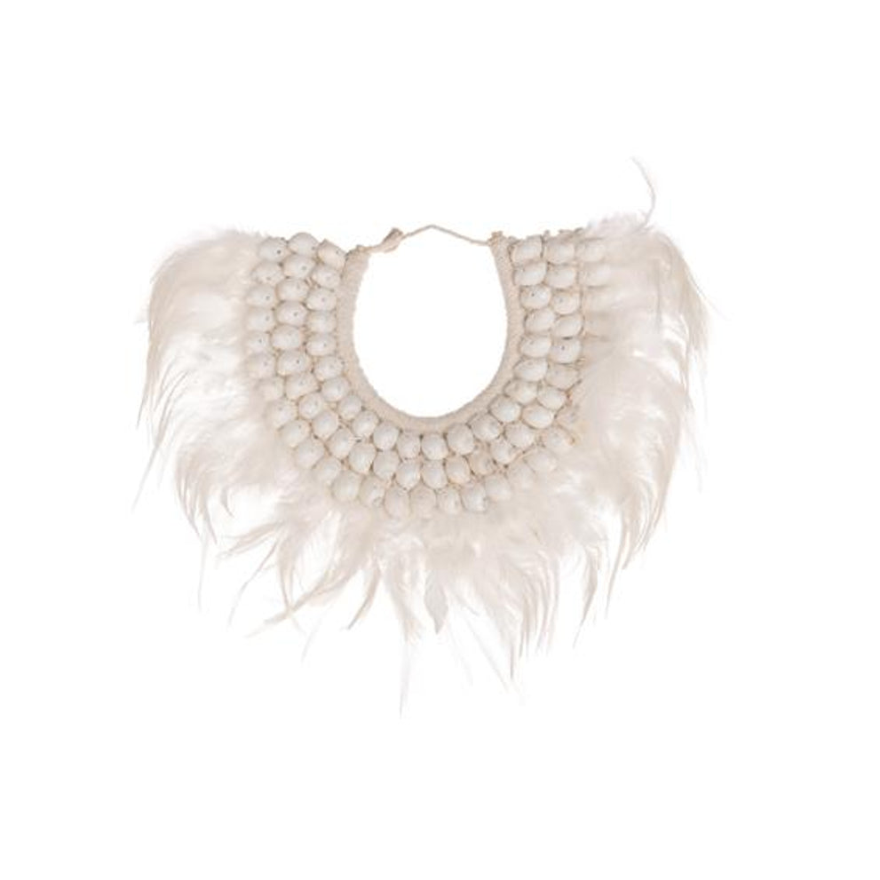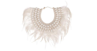 Deco necklace feathers / shells 25x20x2.5cm Natural