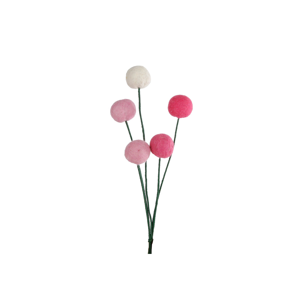 Decorative flower "Ball" 5x cream/pink/fuchsia felt 7x7x33cm