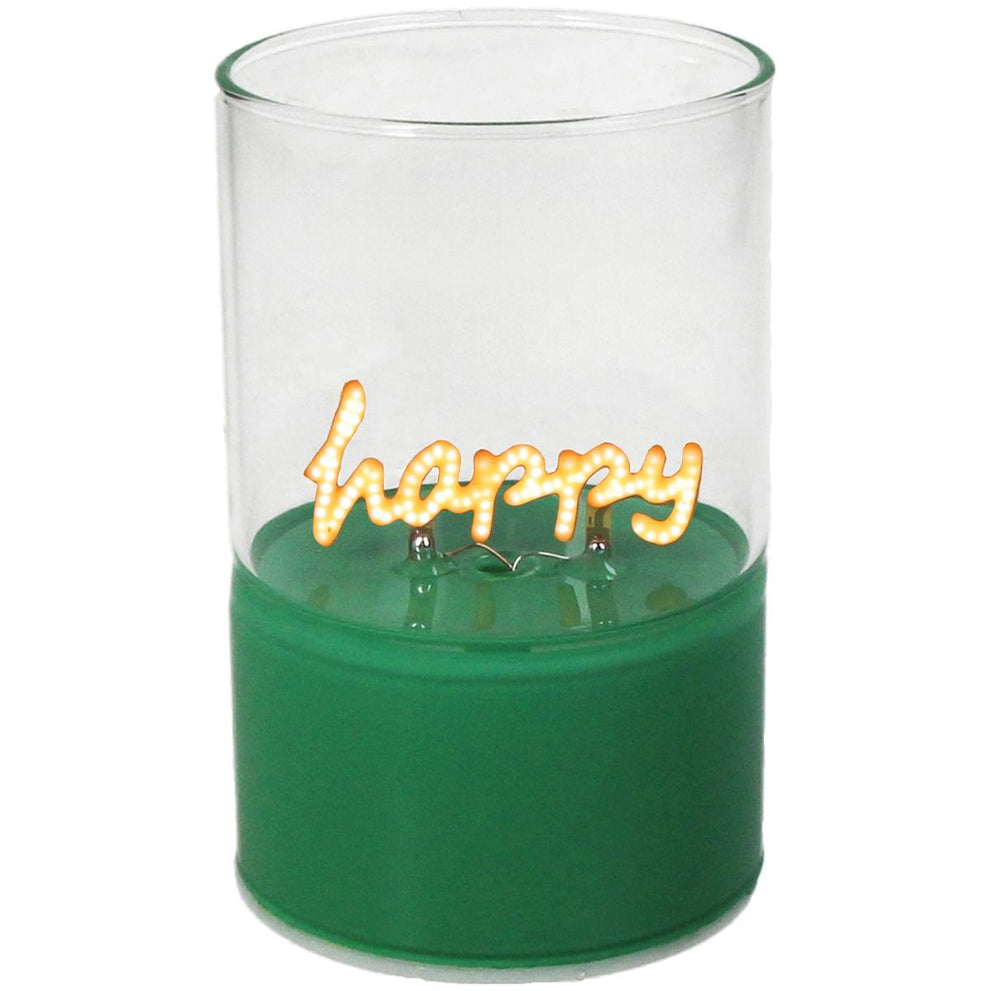 Decoration Light Happy LED Glass Green 6.5x6.5x10cm