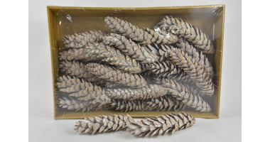 Pine cone 'Strobus' frosted white ±25cm 25pcs