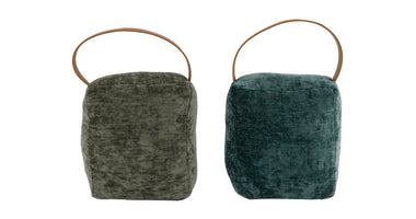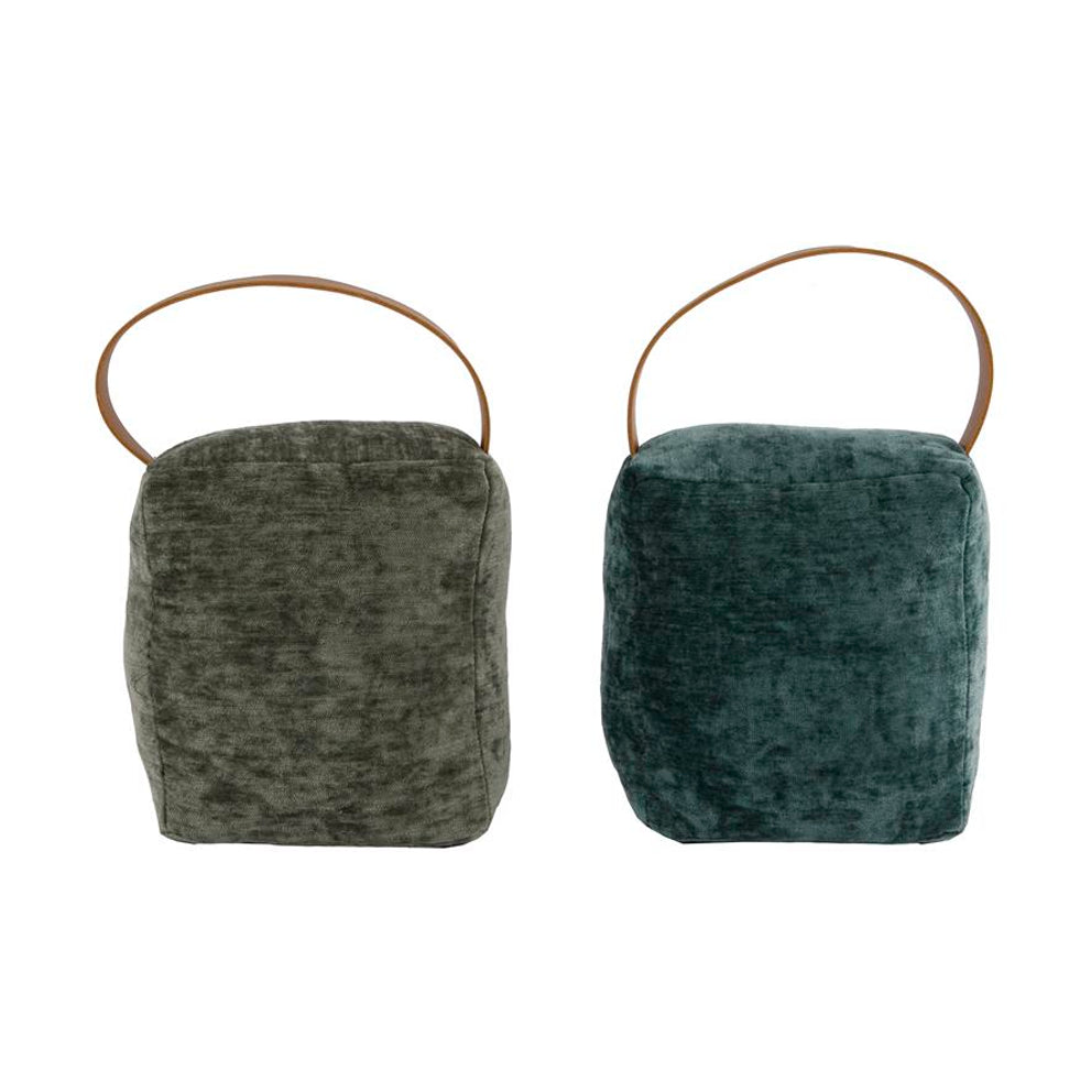 Door stop velor leather handle 2ass 17x9x15cm green/l.green