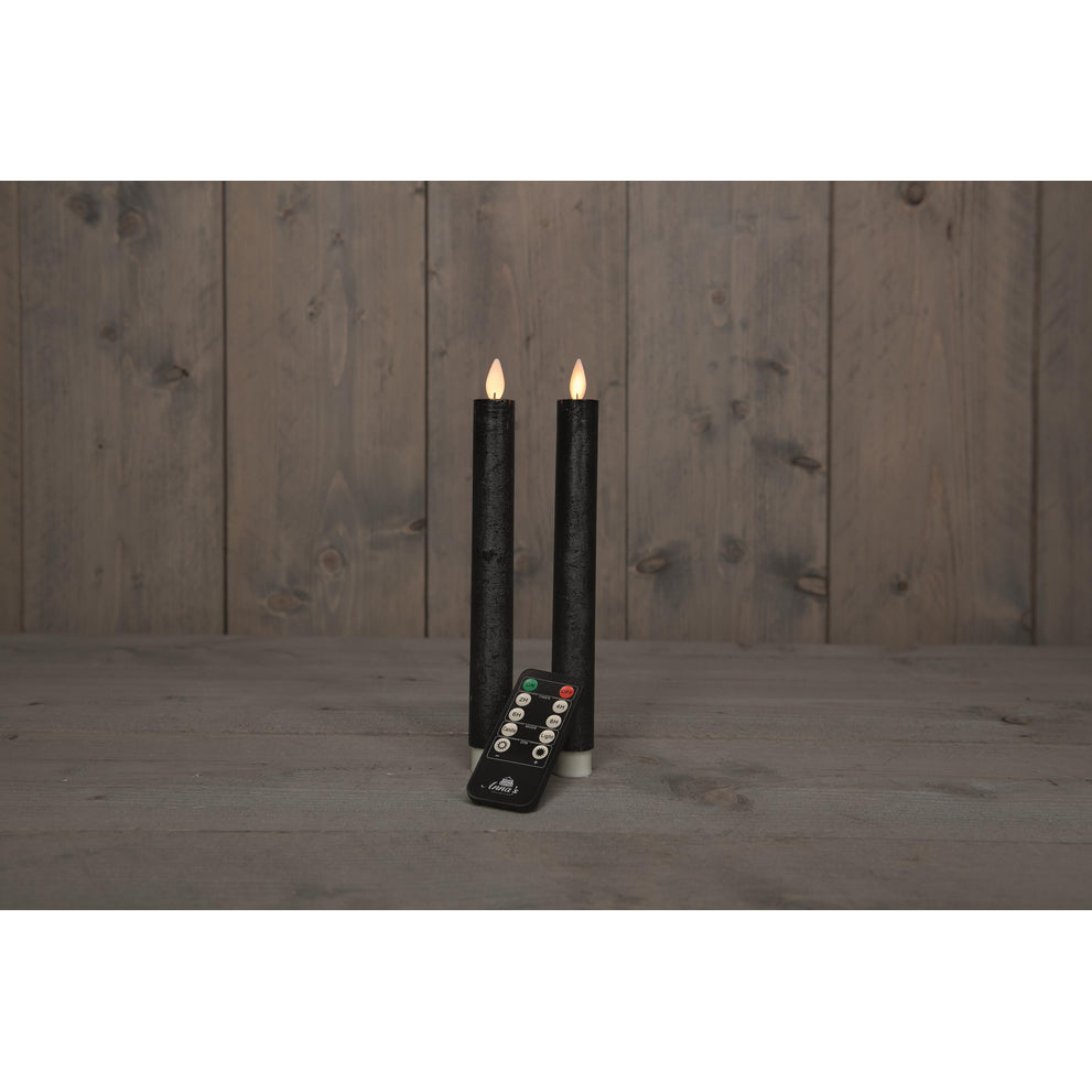 DINNER CANDLE BO 2PCS ANTHRACITE RUSTIC WAX 23CM MOVING FLAME WITH REMOTE CONTROL 2X2AAA