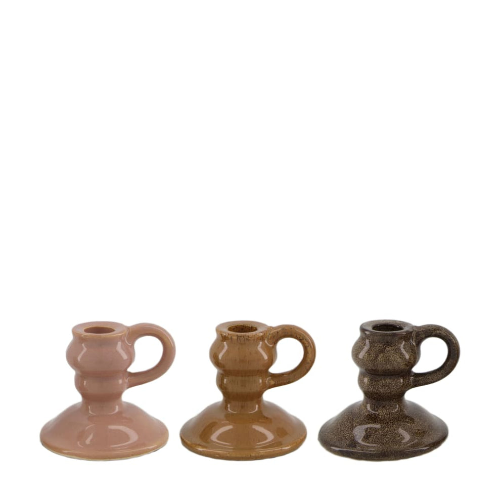 Dinner candle holder ceramic 11.5x10.5x9.5cm 3 Mixed brown