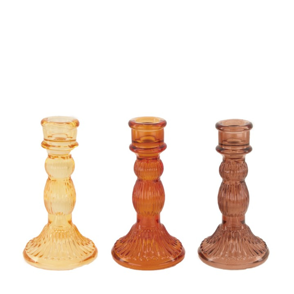 Dinner candle holder glass Ø8x15.5cm Mixed brown