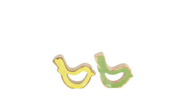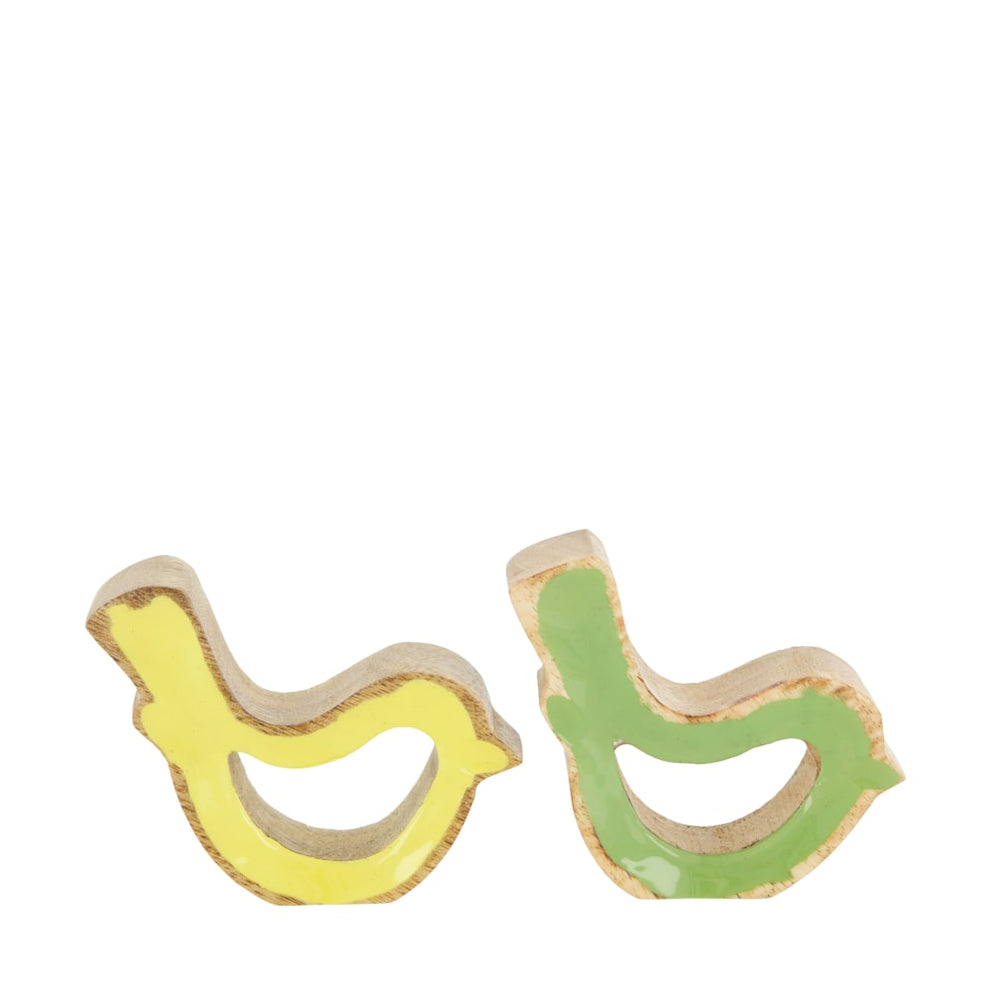 Figurine bird mango wood 10x2.5x7cm Green/Yellow mixed