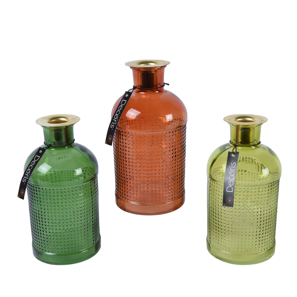 Bottle glass with candlestick 3 assorted colors D8 H16cm