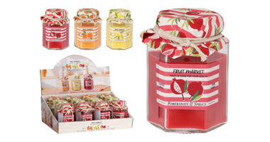 FRUIT SCENTED CANDLE IN JAM JAR D6 H8 CM 3 ASSORTED