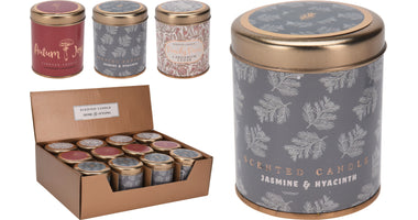 SCENTED CANDLE IN A TIN '''AUTUMN JOY'' D7 H8CM 3 ASSOCIATION DESIGNS