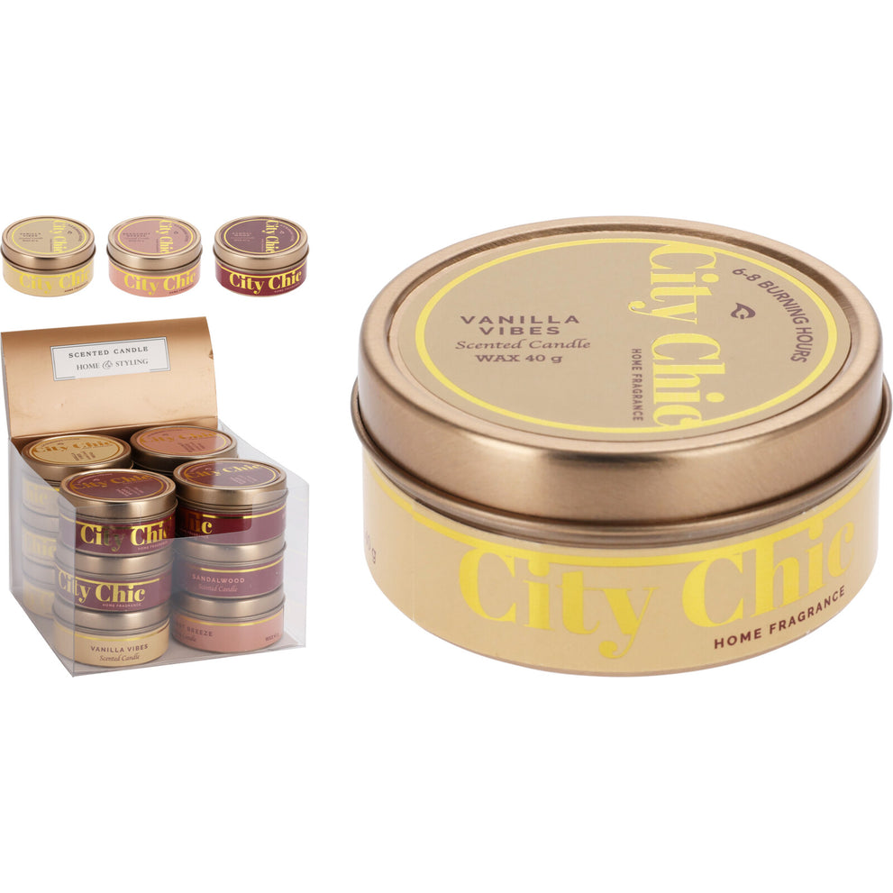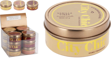 SCENTED CANDLE IN A TIN "CITY CHIC" D6 H3CM 3 ASSOCIATION DESIGNS