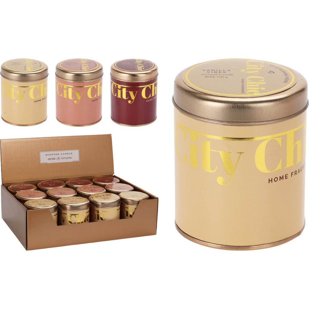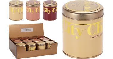 SCENTED CANDLE IN A TIN "CITY CHIC" D7 H8CM 3 ASSOCIATION DESIGNS