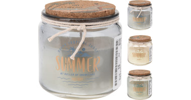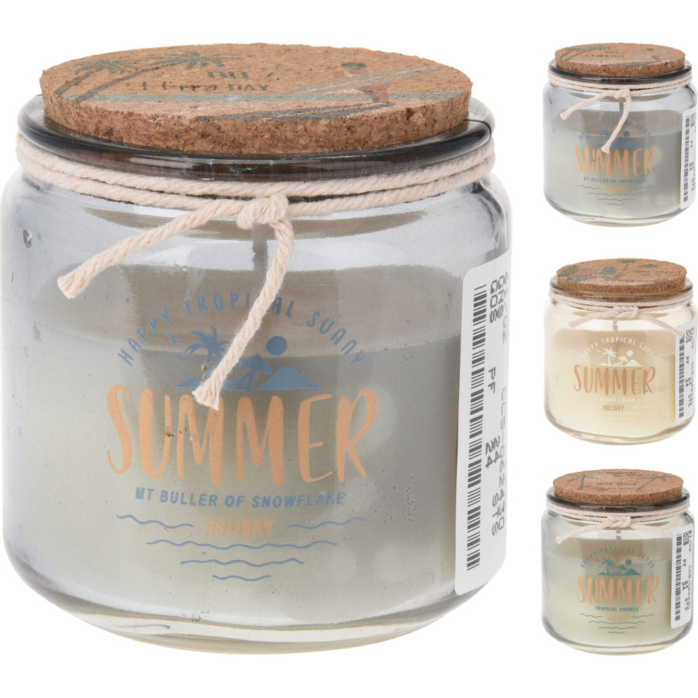 SCENTED CANDLE IN GLASS JAR "SUMMER" WITH CORK D8 H8CM 3 ASS
