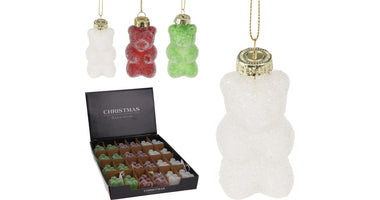 GLASS HANGING DECORATION BEAR D3.5 H7CM 3 ASSORTED COLORS
