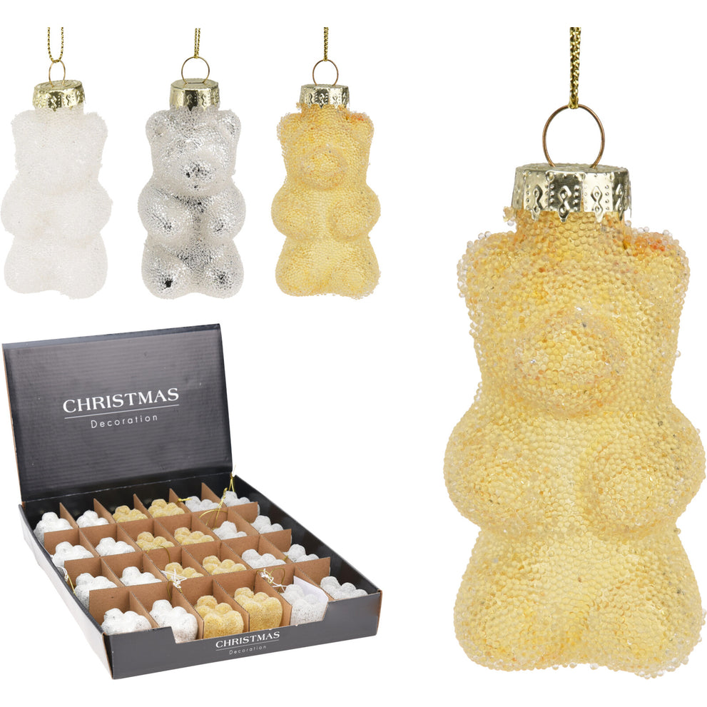 GLASS HANGING DECORATION BEAR D3.5 H7CM 3 COLORS ASSORTED