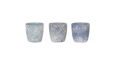 Glass candle holder 9x9x9cm 3 assorted Blue mix