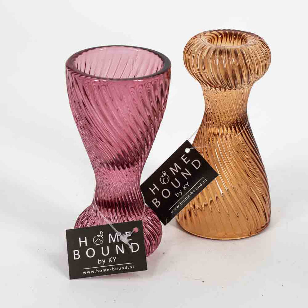 Glass candle holder pink 6x6x12cm