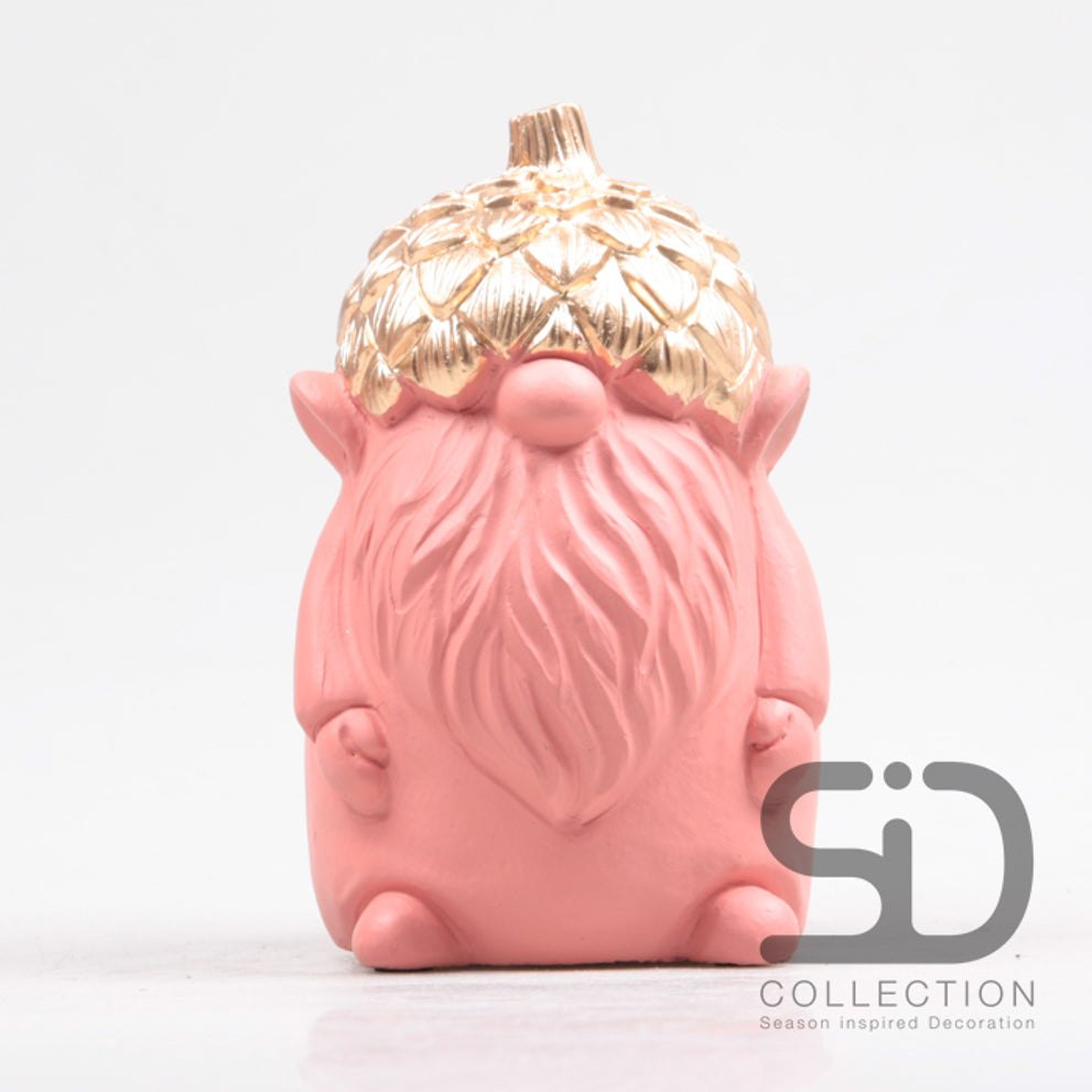 GNOME WITH ACORN CEMENT 12X11.5X18.7 CM OLD ROSE