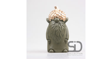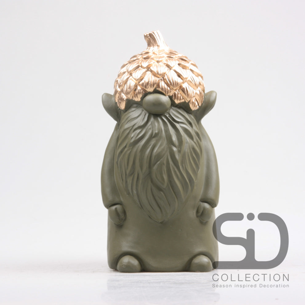 GNOME WITH ACORN, CEMENT, 15X14.5X29.7 CM, OLIVE GREEN
