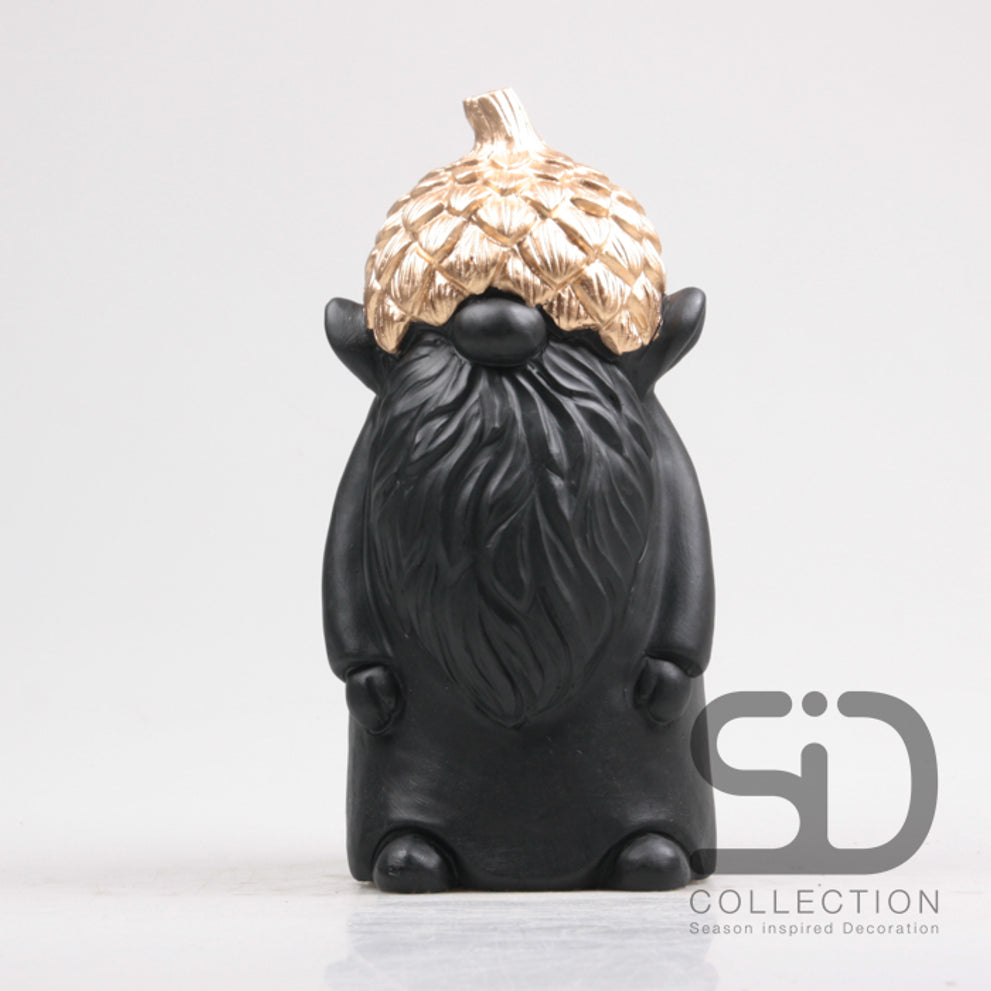 GNOME WITH ACORN CEMENT 15X14.5X29.7 CM BLACK