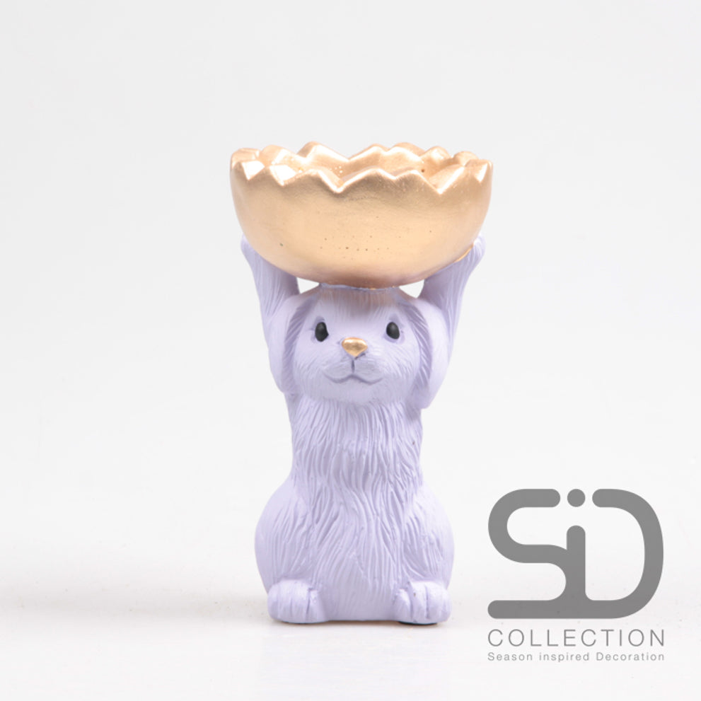 HARE WITH BOWL CEMENT 11X9.5X18 CM LILAC
