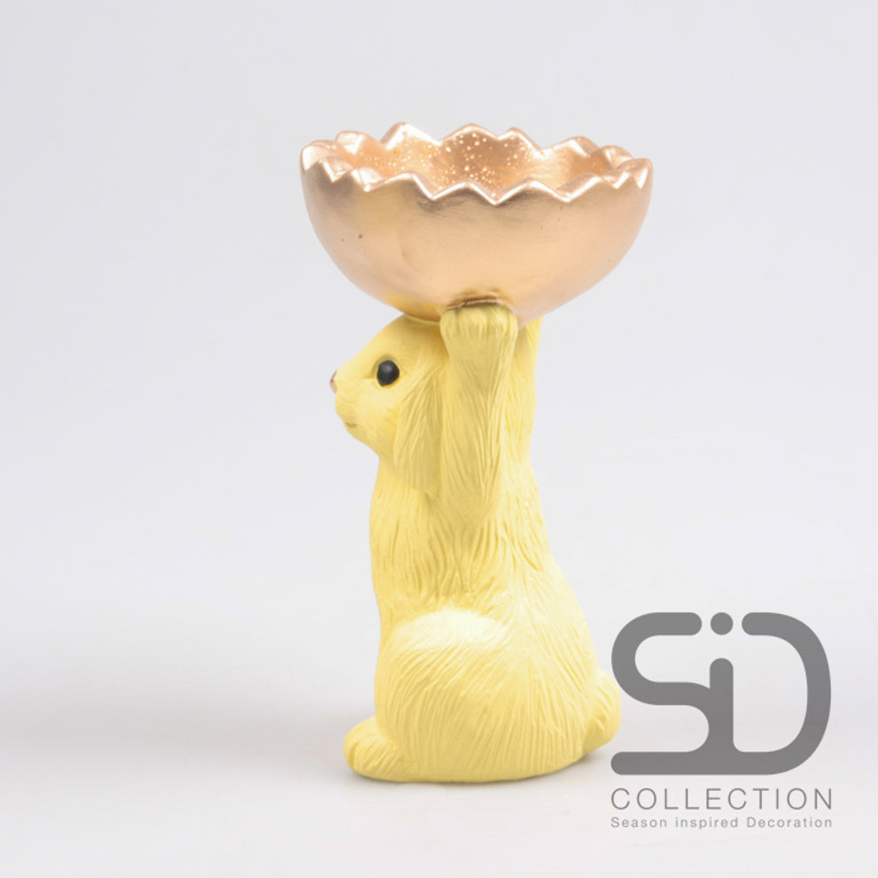HARE WITH BOWL CEMENT 15X12.5X23 CM YELLOW