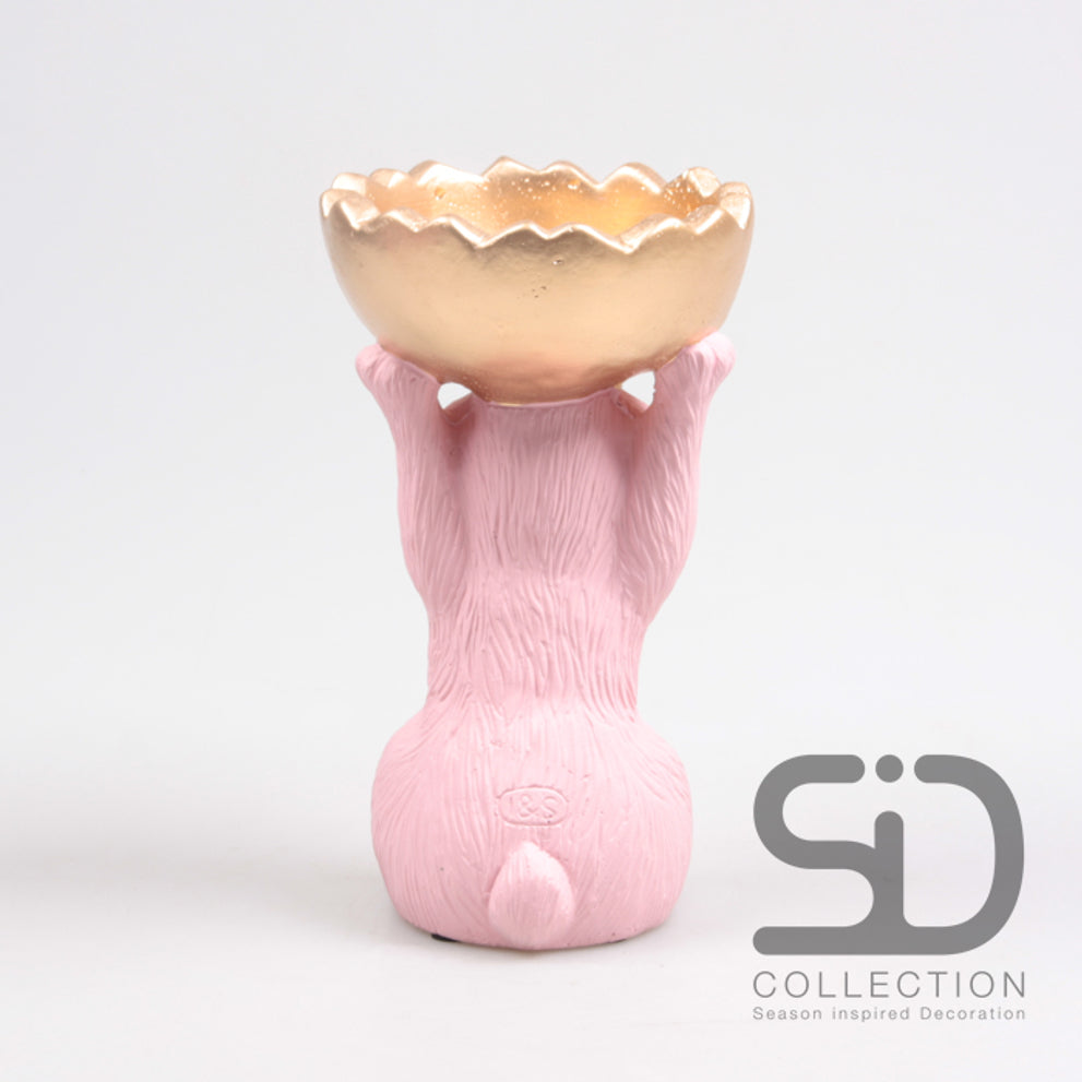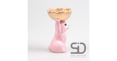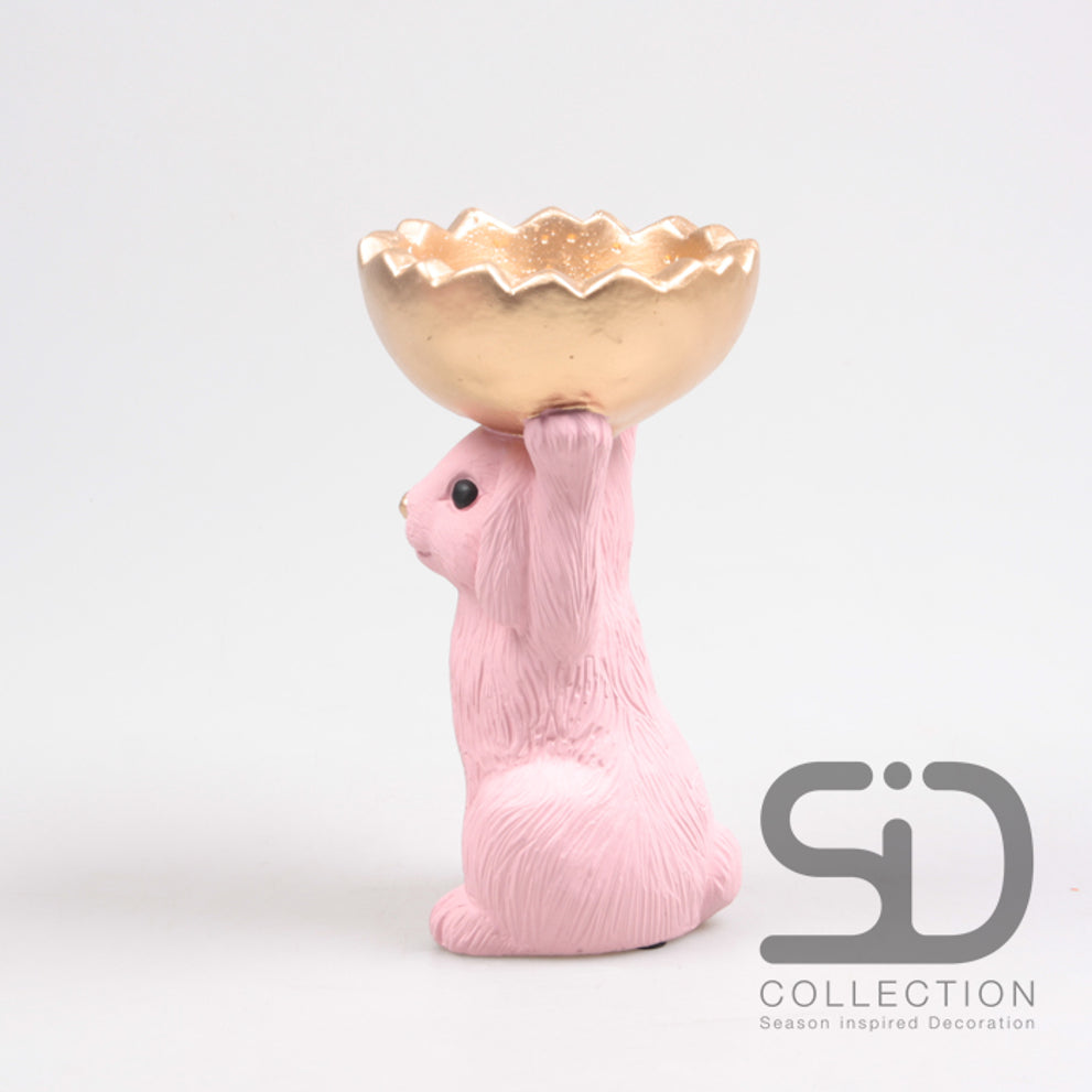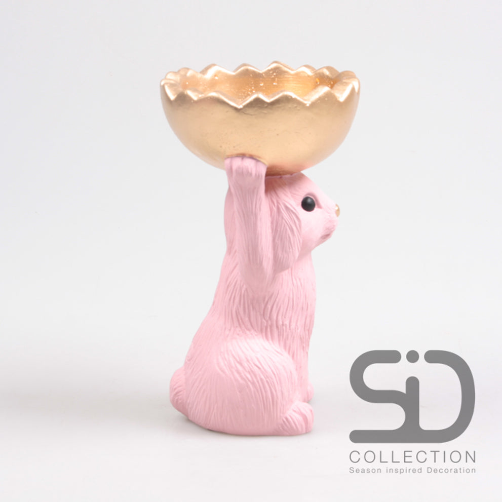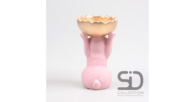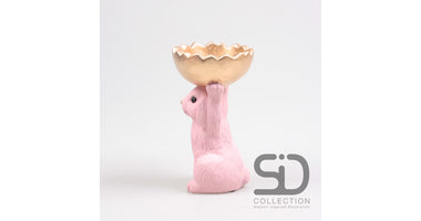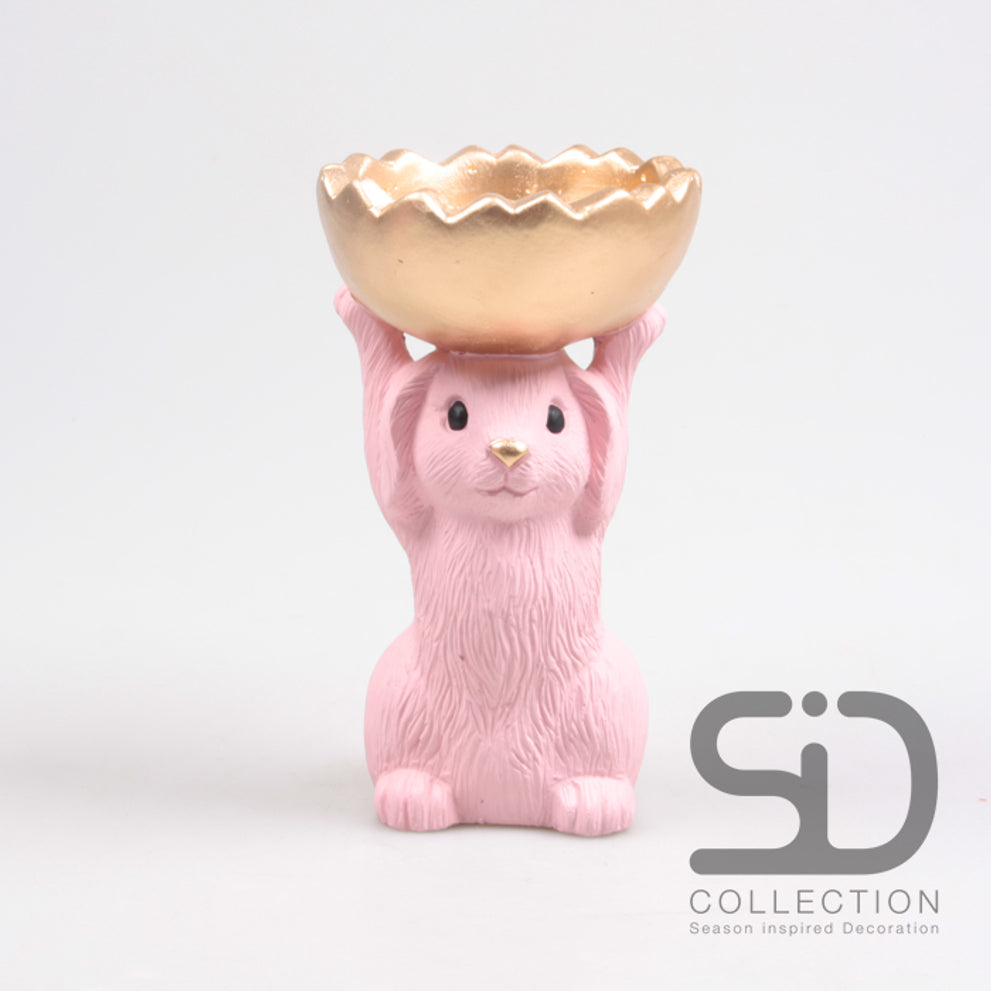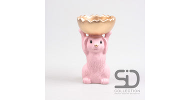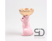 RABBIT WITH CEMENT BOWL 15X12.5X23 CM ROSE