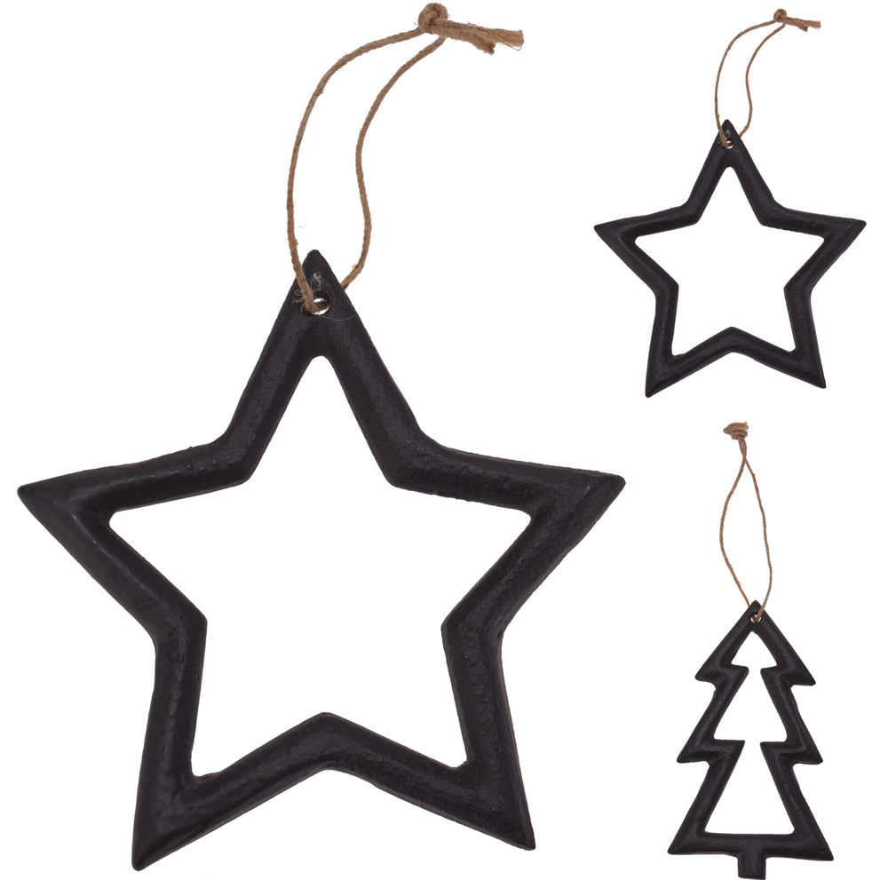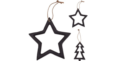 HANGING DECORATION ALUMINUM TREE AND STAR ASSORTED BLACK 10CM