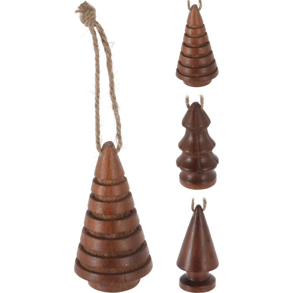 HANGING CHRISTMAS TREE MANGOW WOOD D4.5 H9.5CM BROWN 3 ASSORTED