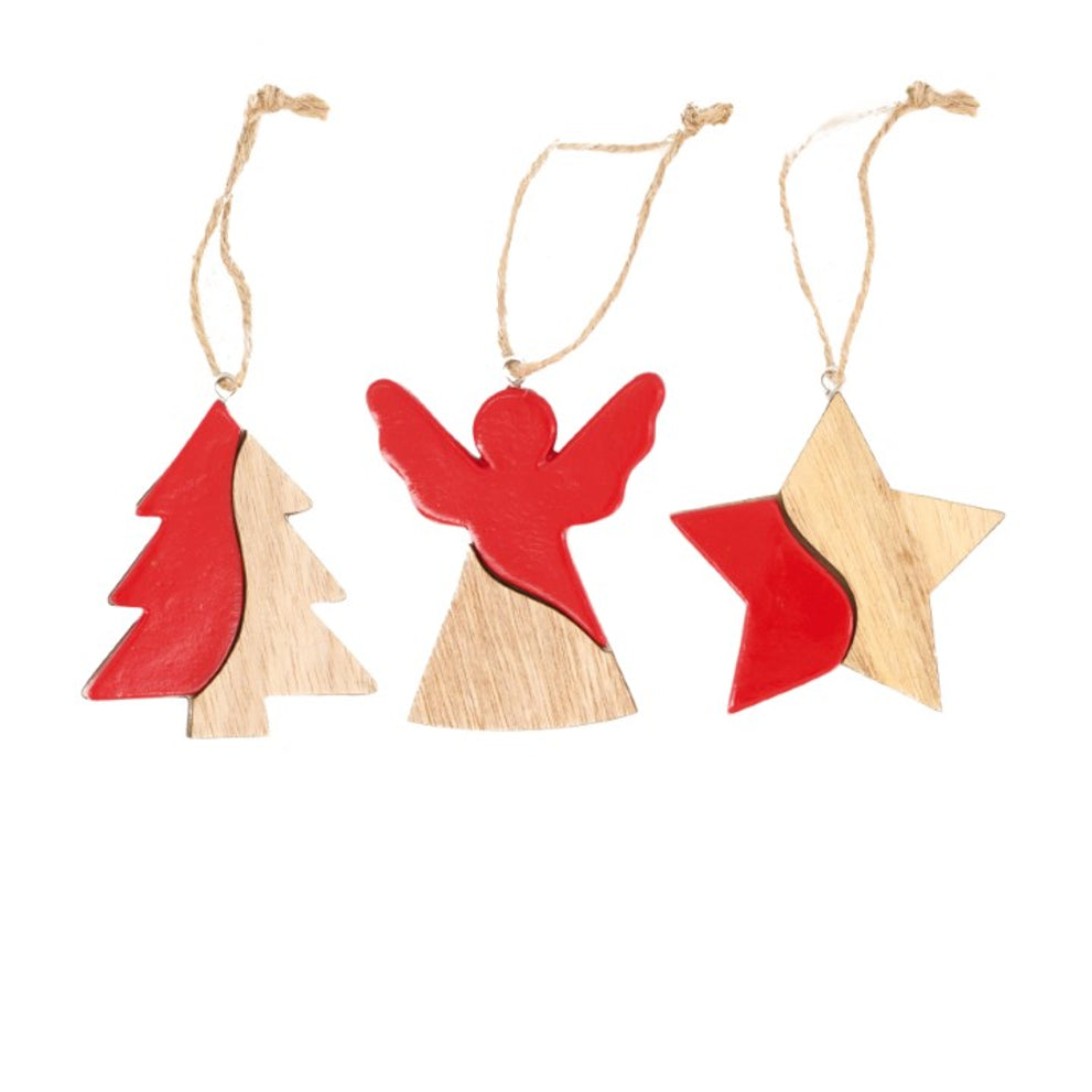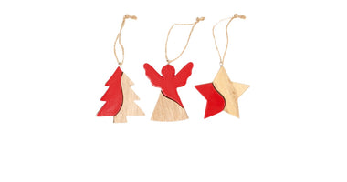 Hanger ceramic with plywood 7.5x0.6x7.5cm 3pc Mixed Red