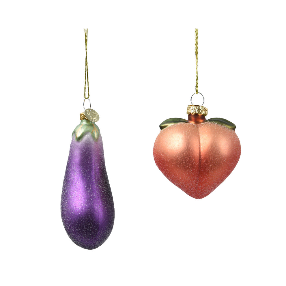 Pendant Peach/Eggplant glass 2 assorted 5.6x6x6.6cm
