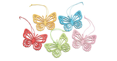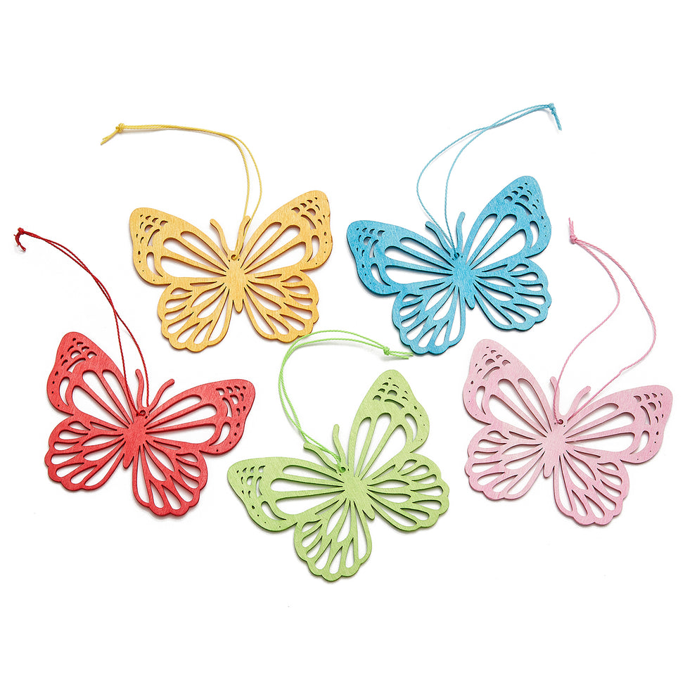 Zahra' wooden butterfly pendant, 5 assorted 10cm - per 4 pieces