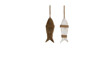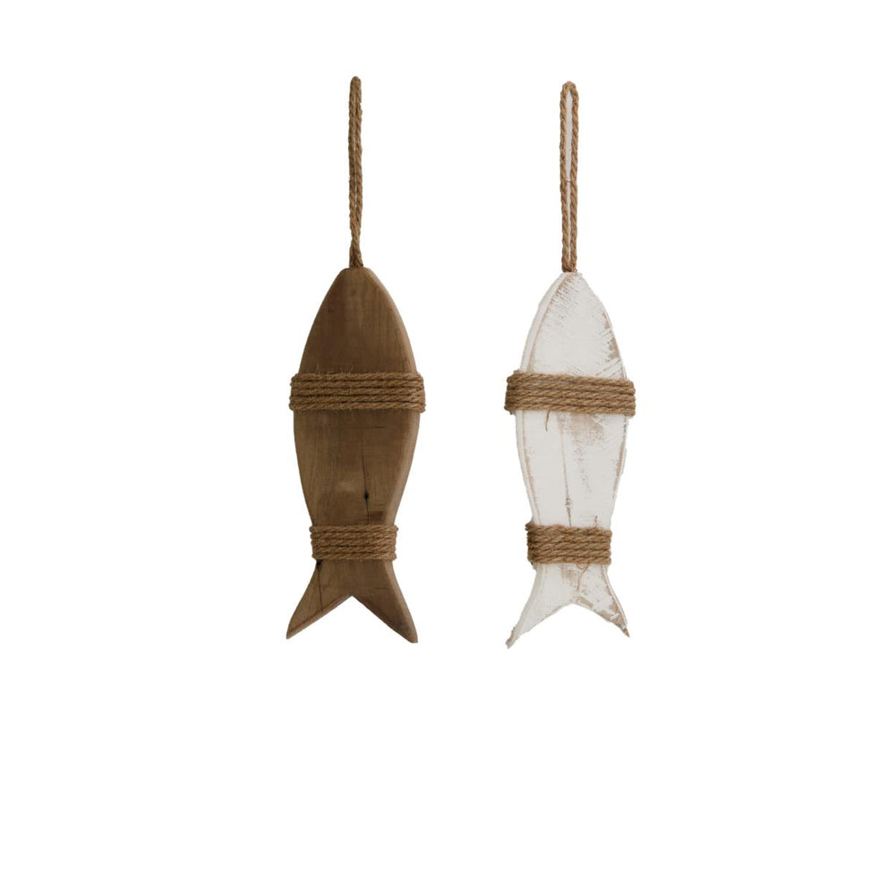 Hanging fish historic wood 28x10x1.5cm Natural/White Mixed