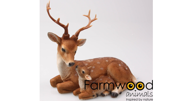 DEER WITH YOUNG 21X13X20 CM POLYRESIN