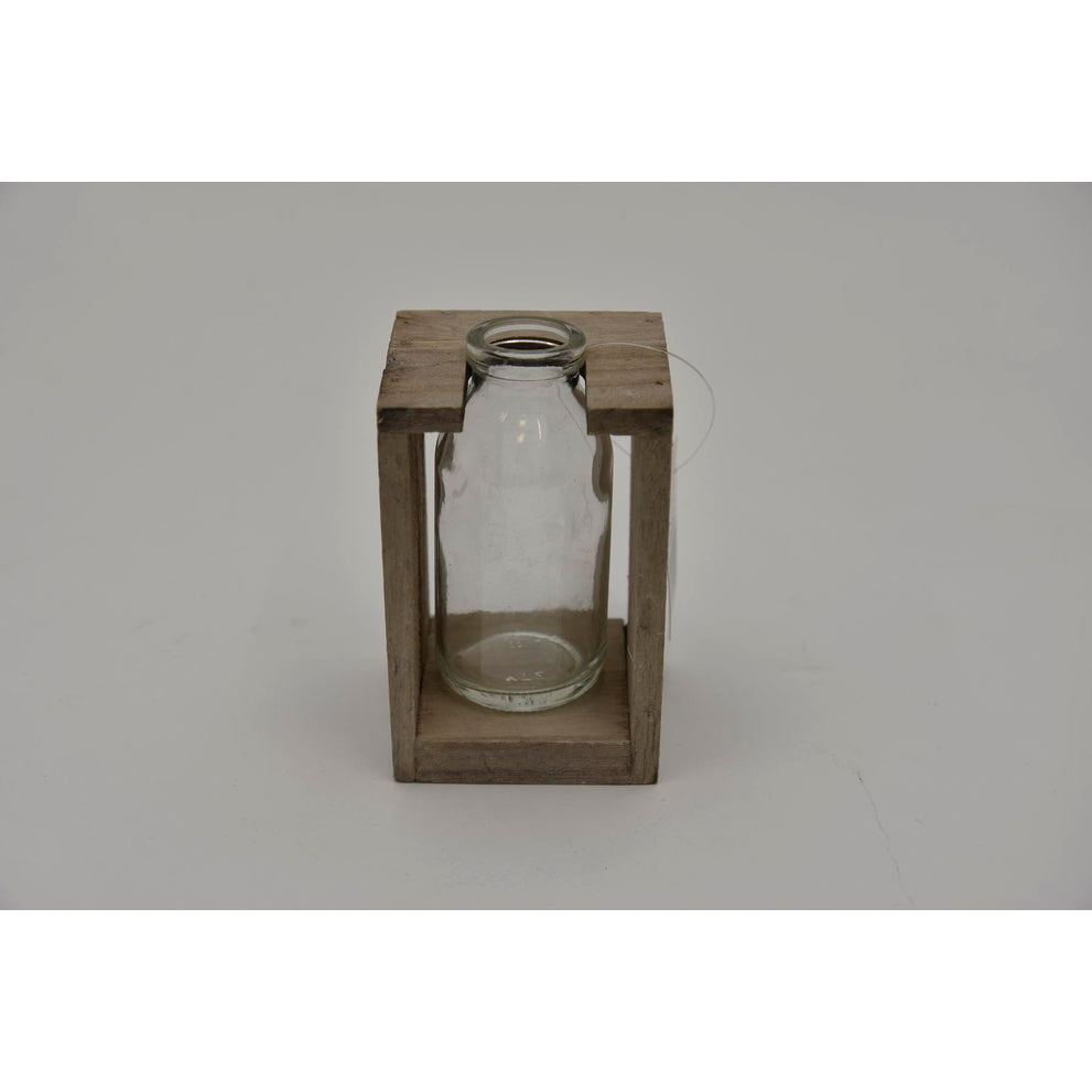 Wooden rack gray with 1 bottle 7.5x7.5x11.5cm