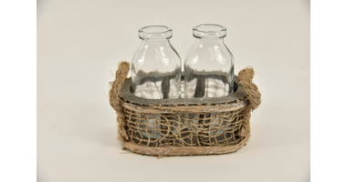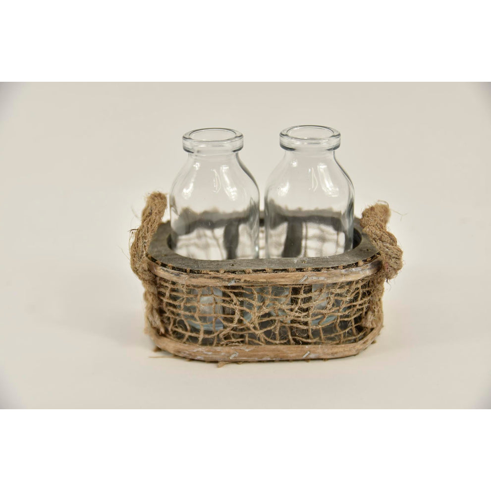 Oval wooden rack "Jute" with 2 bottles and ears 14x8.5x10cm natural