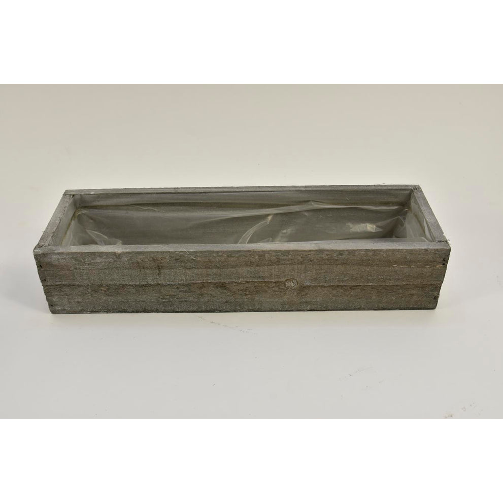 Wooden tray/planter rectangular grey-wash 30x9x6cm