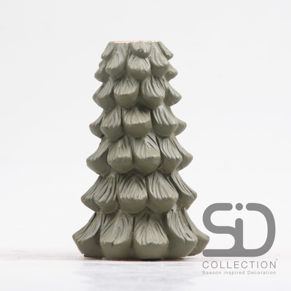 CANDLE HOLDER TREE CEMENT 10X10XX15 OLIVE GREEN